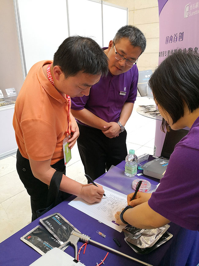 在創(chuàng)新研究基礎(chǔ)上,本次會(huì)議吸引了國內(nèi)外院士、知名專家學(xué)者。大會(huì)期間,我司速豐?可吸收止血結(jié)扎夾展臺(tái)一如既往地受到眾多與會(huì)者的關(guān)注與互動(dòng)體驗(yàn),并現(xiàn)場登記申請,希望獲到產(chǎn)品試用機(jī)會(huì)。