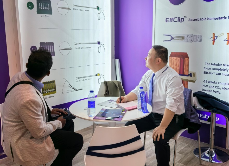 圣石科技此次展出的數(shù)款微創(chuàng)手術(shù)創(chuàng)新醫(yī)療器械產(chǎn)品,憑借其全新的產(chǎn)品設(shè)計(jì)理念,領(lǐng)先的精密工藝技術(shù)和卓越的性能,吸引了來(lái)自全球的目光。展位前人潮涌動(dòng),來(lái)自中東、歐洲、亞洲及非洲等地區(qū)的客戶和友商紛紛駐足,深入了解產(chǎn)品細(xì)節(jié)并洽談合作。