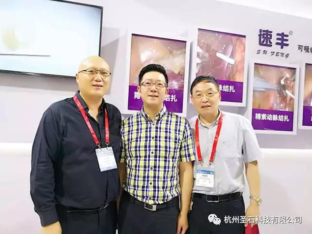 河南省醫(yī)學(xué)會(huì)微創(chuàng)外科分會(huì)新老主任委員河南省人民醫(yī)院微創(chuàng)中心主任張超教授及武警河南總隊(duì)醫(yī)院普外科主任趙國強(qiáng)教授也特意到訪我司展臺(tái),與我司石磊董事長合影,表達(dá)對代表國貨優(yōu)質(zhì)產(chǎn)品速豐?的認(rèn)可與支持。